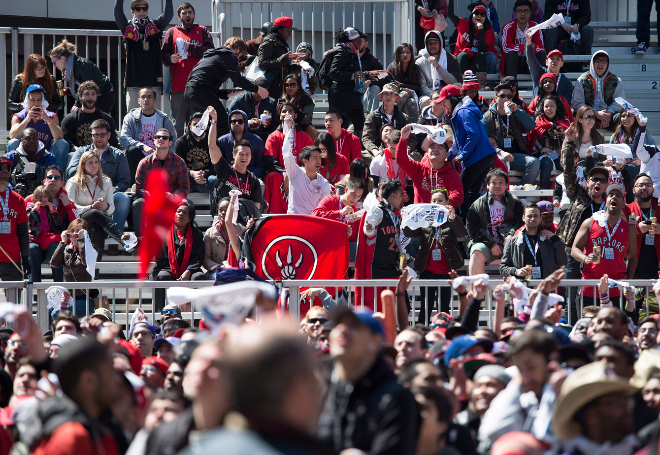 Les partisans des Raptors ont beaucoup moins de difficulté à trouver des billets et ils ont la réputation d’être parmi les meilleurs partisans de la NBA. Lors des séries éliminatoires de la saison dernière, une foule de 10 000 partisans s’est massée à l’extérieur du ACC pour regarder le match au Maple Leaf Square, surnommé le « parc jurassique » pour l’occasion. Certains partisans se rendent aussi aux matchs à l’étranger pour encourager leur équipe.