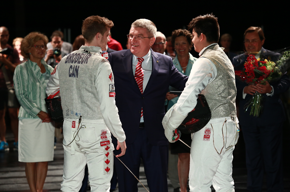 Thomas Bach visite le Centre d’éducation physique et des sports de l’Université de Montréal (CEPSUM), lieu de son triomphe olympique en escrime aux Jeux de ’76.