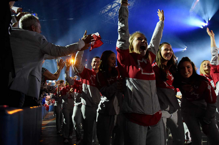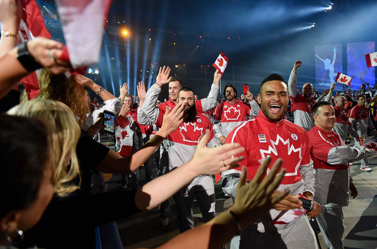 Le canoéiste Mark Oldershaw a guidé la plus grande délégation canadienne jamais assemblée à l’intérieur du Rogers Centre, renommé PAD Panam pour la durée des Jeux, dans le cadre d’une cérémonie haute en couleur imagée par le Cirque du Soleil.