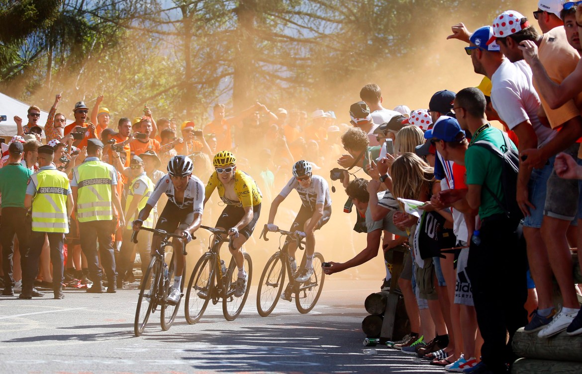 Chaque année, des dizaines de milliers de fans néerlandais se rendent en pèlerinage à l’Alpe d’Huez. Ils prennent en charge l’un des 21 virages en épingle à linge de la montée qu’on surnomme le Dutch Corner.. Ils se présentent souvent 3-4 jours avant l’étape pour réclamer leur zone, installer leur campement, attendre la course et picoler. (Donc, ils sont saouls depuis 3 jours au moment où la course arrive, santé!🍻)