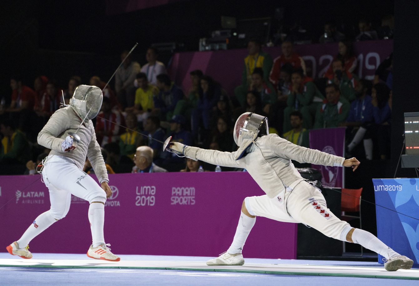 Marc-Antoine Blais Belanger participe à l’épée individuelle aux Jeux panaméricains de Lima, au Pérou, le 5 août 2019. Photo : Christopher Morris/COC