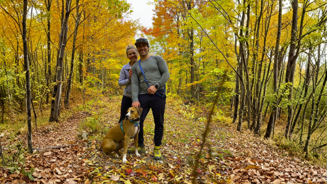 Son entraînement hors-saison a notamment inclus des sorties de course… avec les chiens. Oui, les chiens au pluriel. Drury et MK ont accueilli un nouveau membre dans la famille cet été : Rudy, un labrador noir.