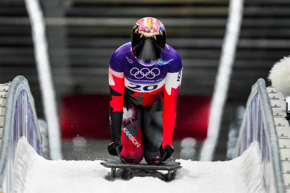 Jane Channell d’Équipe Canada participe à la première manche de skeleton aux Jeux olympiques d’hiver de Milano Cortina 2026 en Italie, le vendredi 13 février 2026. Photo de Candice Ward/COC
