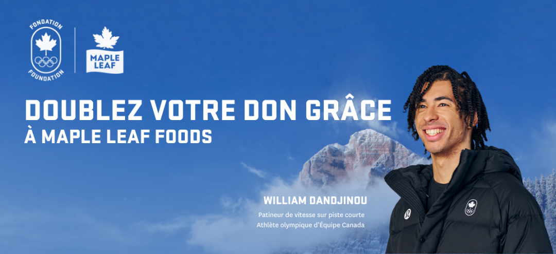 *Maple Leaf Foods Inc. (« MLF ») jumellera tout don unique fait à la Fondation olympique canadienne (« FOC » ) entre le 30 janvier 2026 à 0 h 01 heure normale de Terre-Neuve (HTN) et le 5 mars 2026 à 23 h 59 heure normale du Pacifique (HP) inclusivement, jusqu’à concurrence d’un montant total de 30 000 $CA pour soutenir l’initiative prochaine génération (Next Gen). Les dons jumelés ne sont pas garantis et seront jumelés jusqu’à ce qu’à ce que le maximum de dons jumelables applicable soit atteint ou jusqu’à ce que la période de jumelage prenne fin, selon la première éventualité. Dans l’éventualité où les dons dépassent le montant maximum pour le jumelage, les dons supplémentaires seront redirigés pour soutenir d’autres besoins prioritaires au support de la mission de la FOC. Des reçus de dons officiels pour les fins d’impôts seront émis uniquement pour le montant réellement donné par le donateur. Aucun reçu fiscal ne sera émis pour les montants jumelés fournis par MLF.