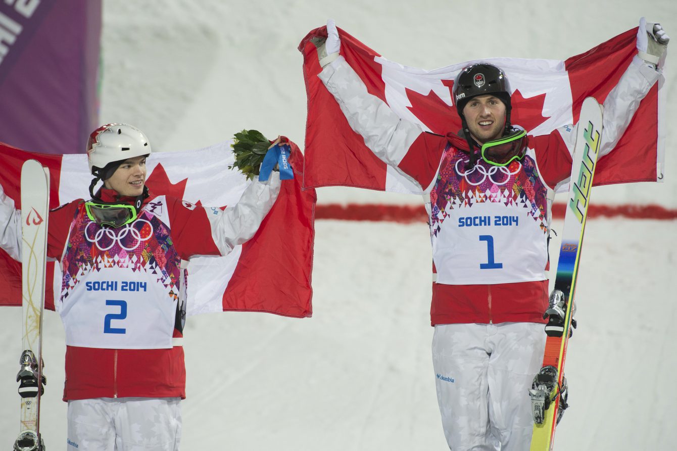 Alexandre Bilodeau et son frère Frédérique après qu’Alex ait remporté l’or aux Jeux olympiques de Vancouver 2010, le 14 février 2010. COC/Jason Ransom
