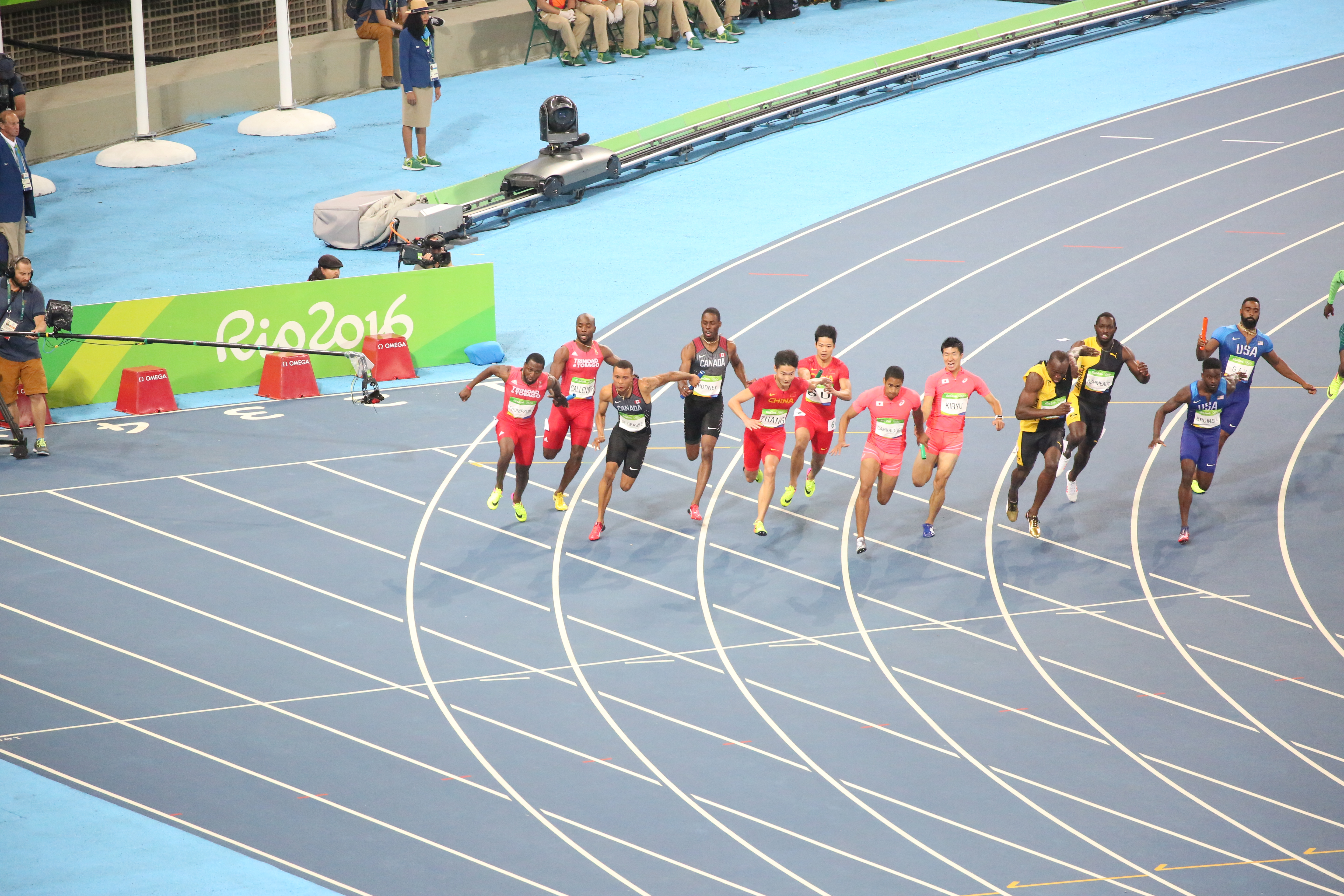 Les Canadiens à la finale du relais 4×100 m, Rio 2016. 19 août 2016. Photo du COC/Stephen Hosier